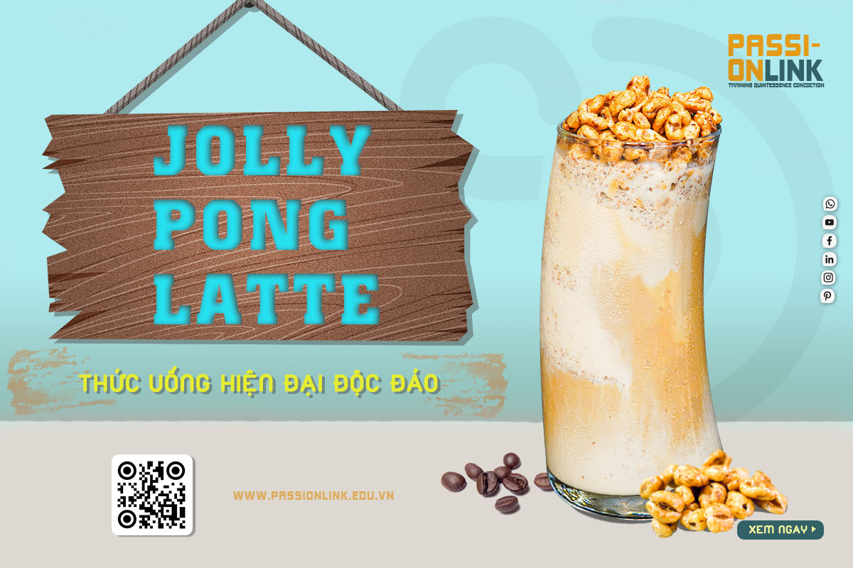 JOLLY PONG Latte là thức uống vừa mới lạ vừa quen thuộc. Mới lạ vì có sự kết hợp của hạt ngũ cốc cà phê xay cùng với sirup vani, quen thuộc bởi vì có vị của cà phê espresso.